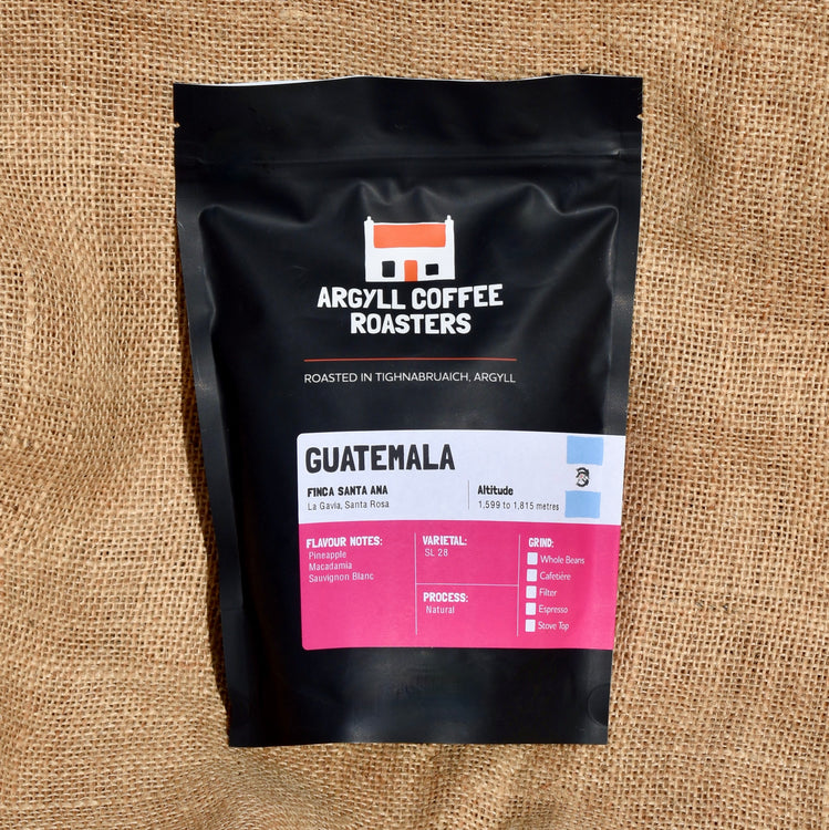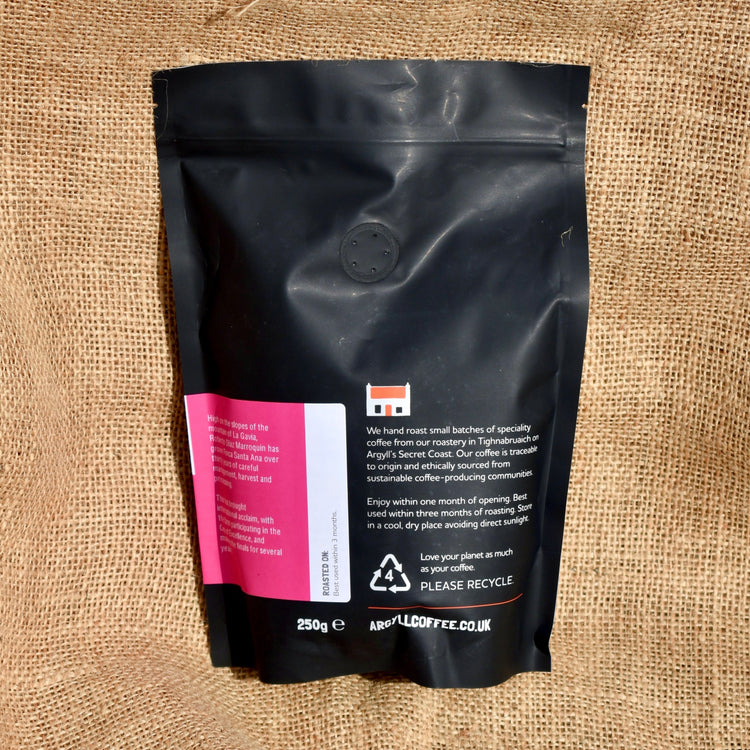 A beautiful natural processed coffee from Finca Santa Ana on the slopes of La Gavia.